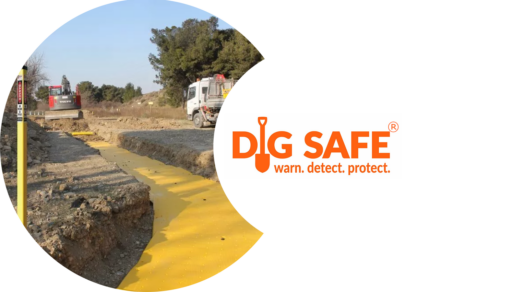 The DIGSAFE® range includes detectable warning tapes and meshes, hard cable covers, HDPE protection plates, marker posts and signage, RFID systems, tracer wires, and rock shields. Site safety products are also part of the Dig SAFE® range, including hi-viz barrier fencing, bunting, and custom safety tapes to protect your workers from onsite hazards.