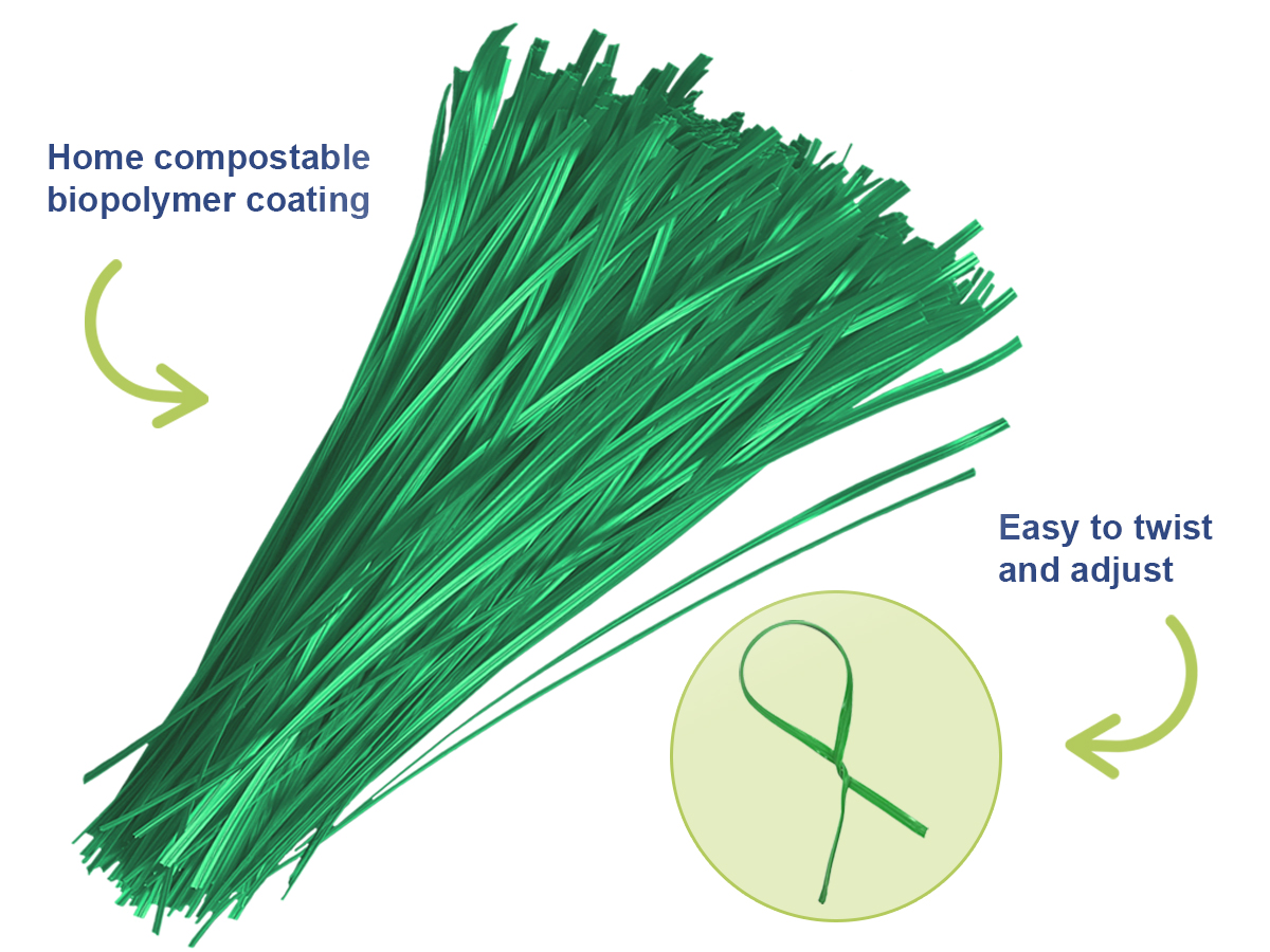 Twisties are a simple & economical method for containing or fastening applications from bag closures, attaching horticulture labels, and tying, or holding cables just to name a few possibilities. This product will provide all the solutions needed but in an environmentally friendly solution, long enough for the product lifecycle but completing end of life quickly.
